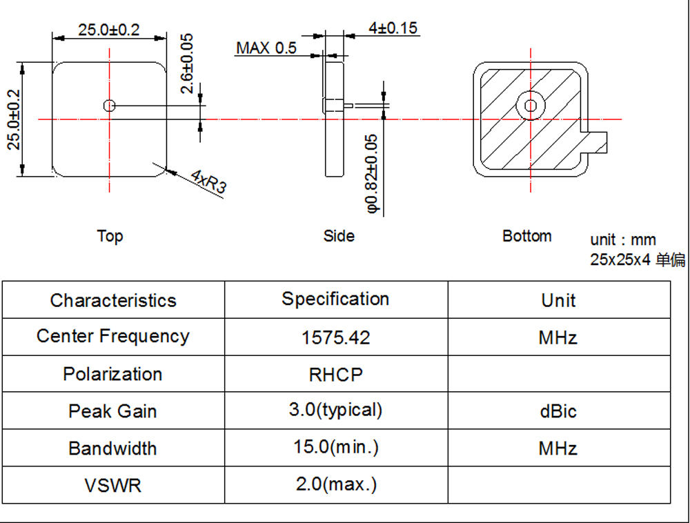 GPS陶瓷天線25*25*4 內(nèi)置天線 導(dǎo)航 定位 頻率可調(diào) 廠家直銷