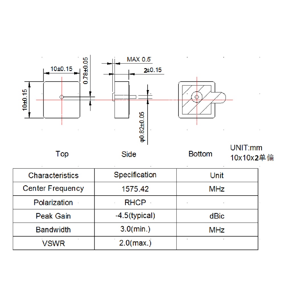 GPS天線10*10*2 頻率可調 有源內置 定位 陶瓷天線 廠家直銷